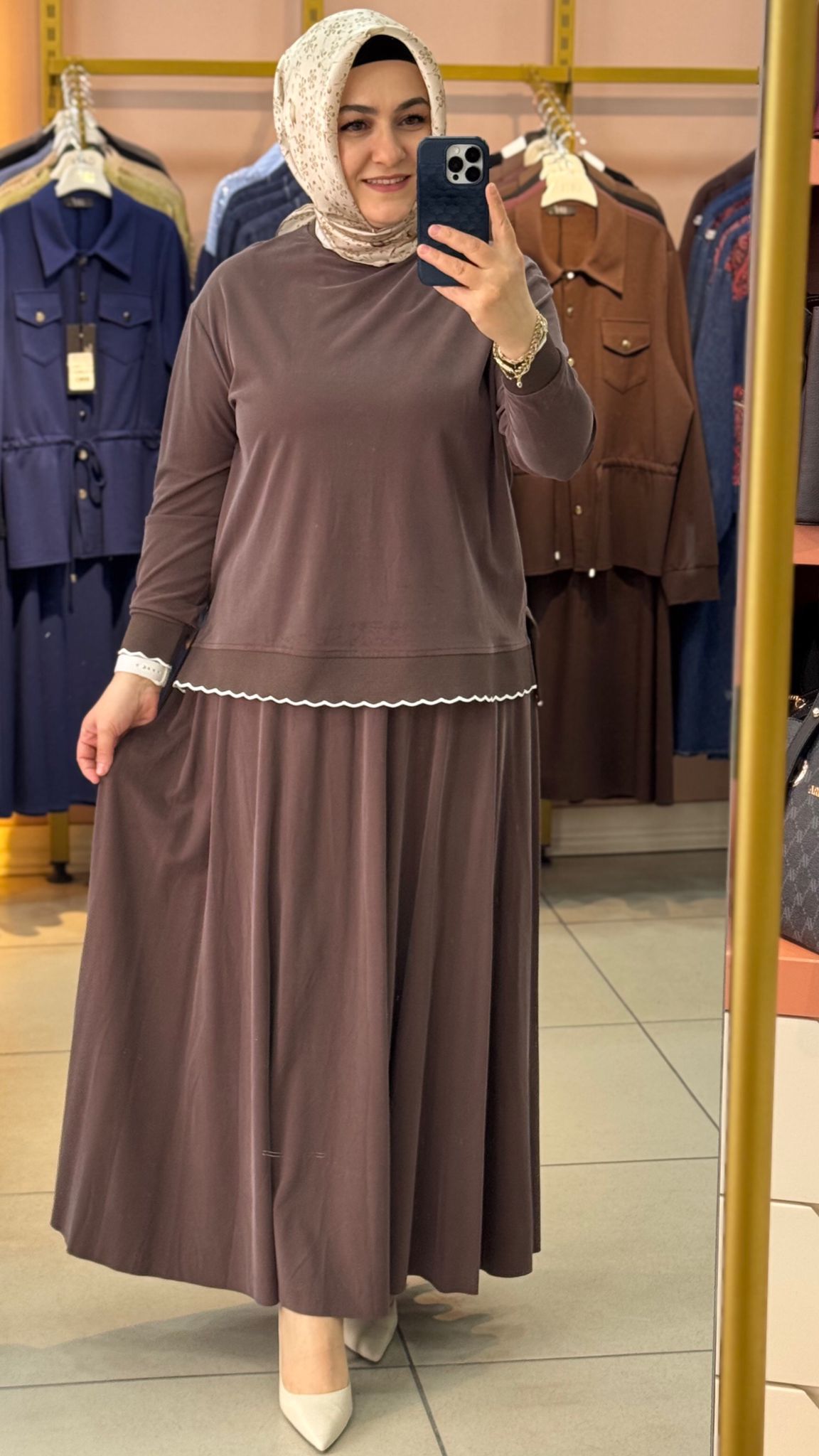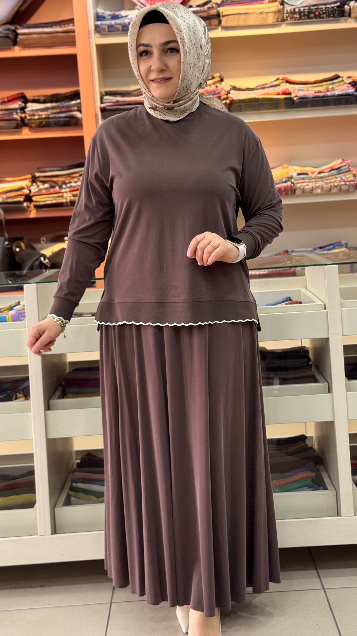 Ribanası Şerit Detaylı Etekli Takım Kahve/14021