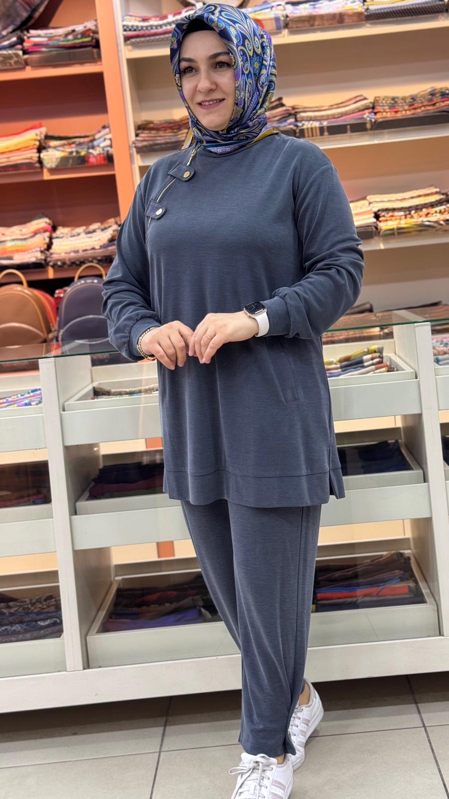 Şalvar Pantolonlu Düğme Detaylı Takım Antrasit/14406