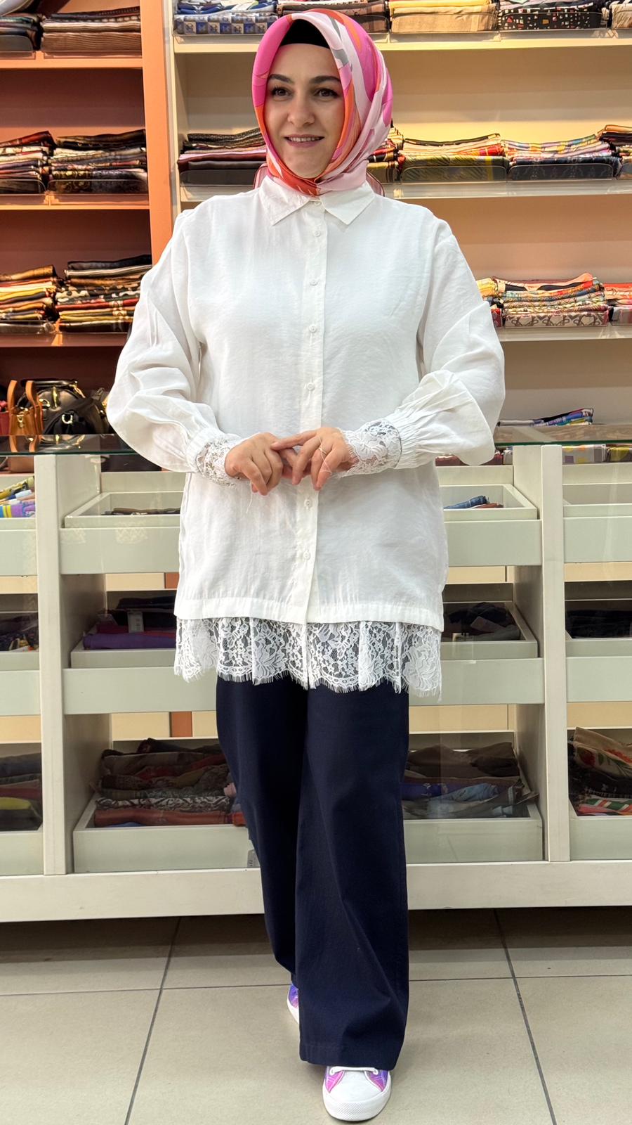 Şık Dantel Detaylı Gömlek Tunik Ekru/260124
