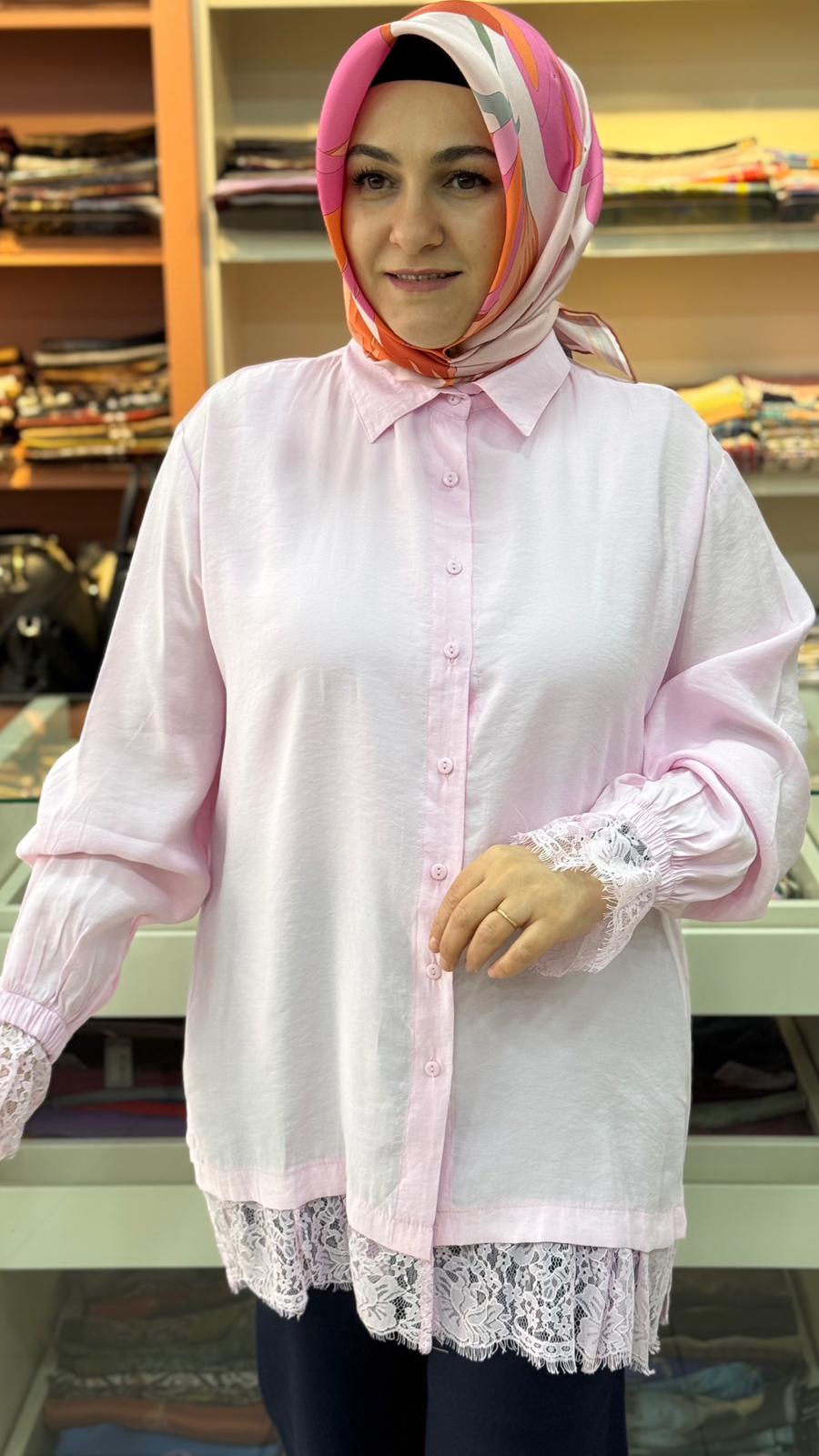 Şık Dantel Detaylı Gömlek Tunik Pembe/260124