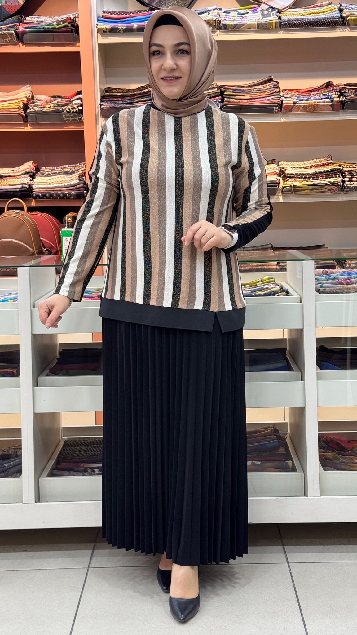 Sim Görünümlü Çizgili Etekli Takım Siyah/11130