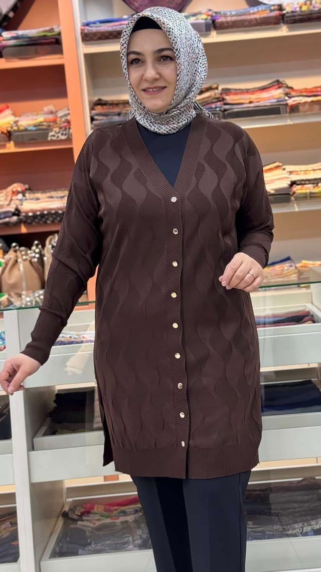 Su Dalgası Desenli Triko Hırka Acı Kahve/3239