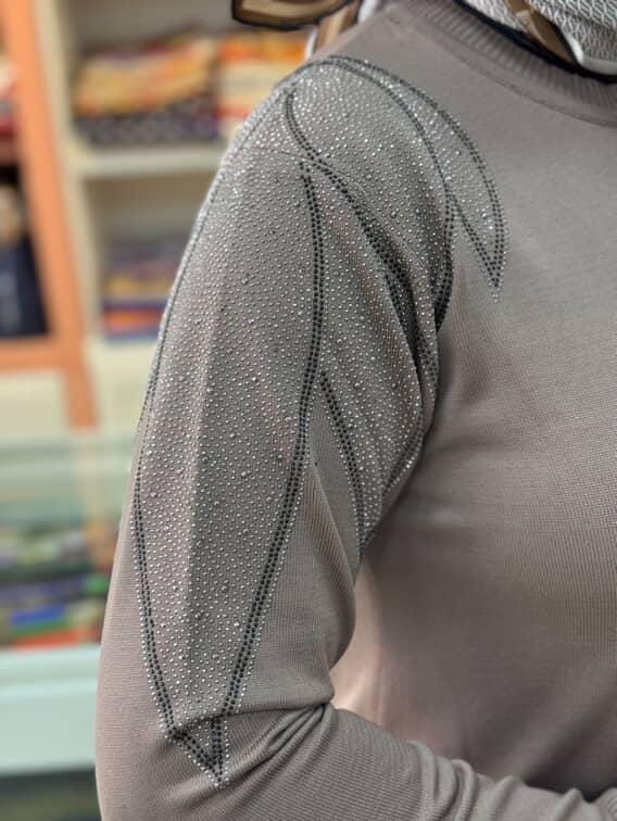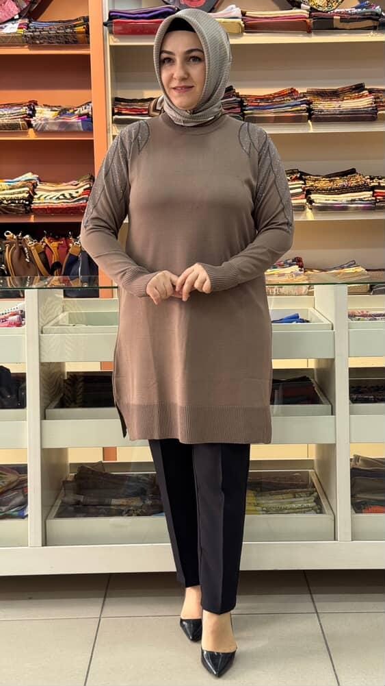 Taş Detaylı Merserize Triko Tunik Koyu Vizon/1836