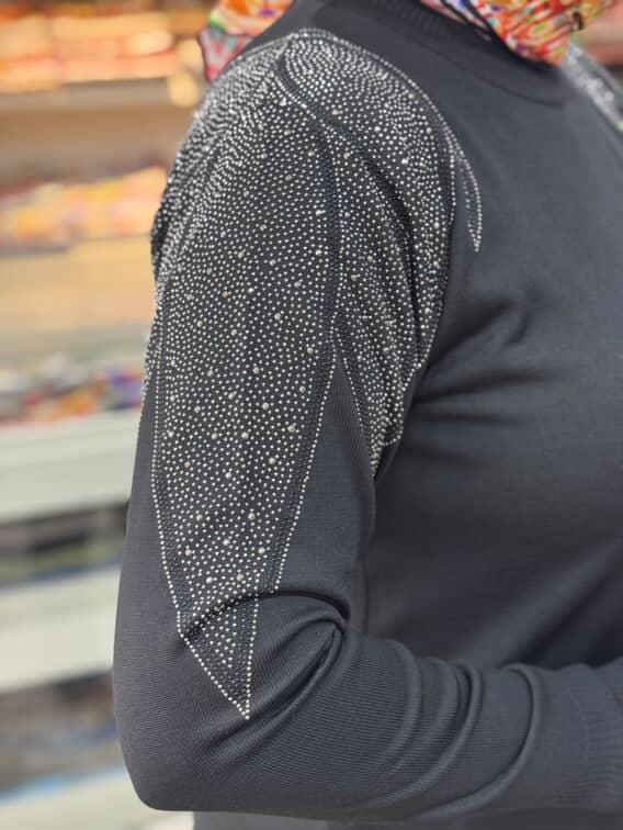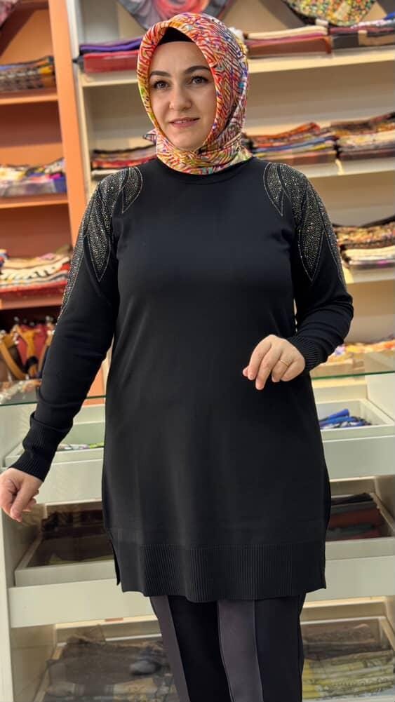 Taş Detaylı Merserize Triko Tunik Siyah/1836