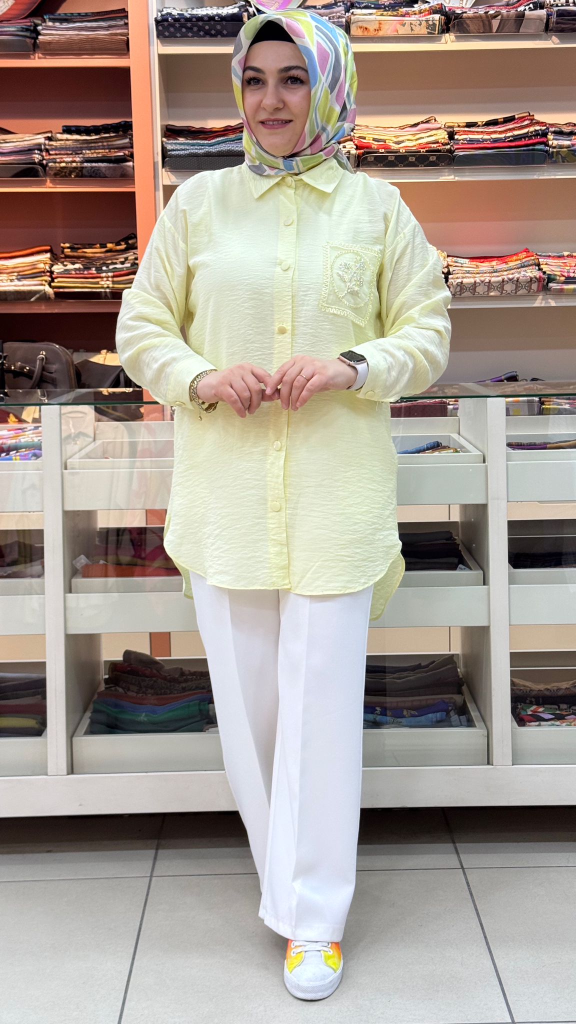 Tül Cepli Nakışlı Gömlek Tunik Sarı/1879