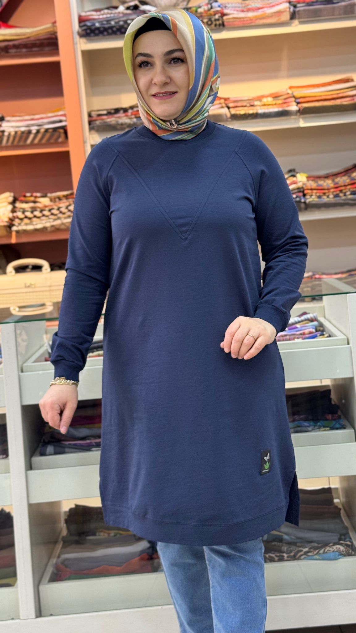 V Desen Uzun Tunik Mavi/257212