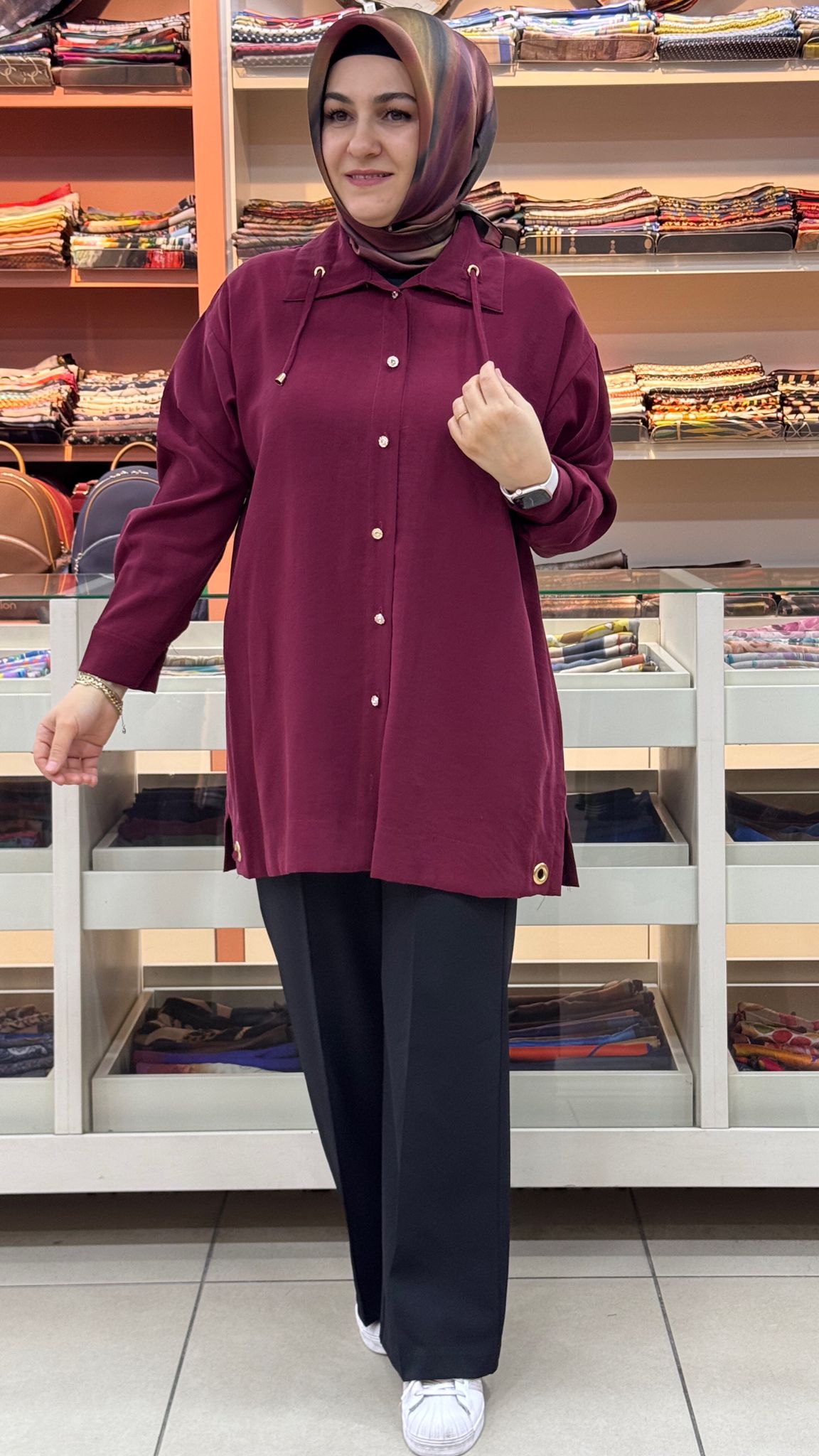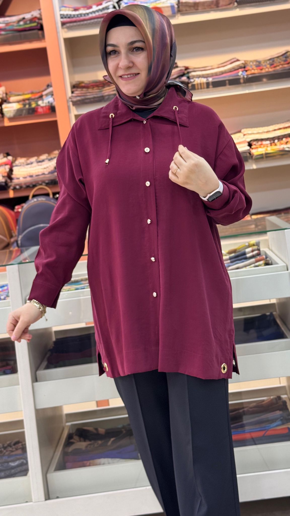 Yakası İp Detaylı Tunik Bordo /1882