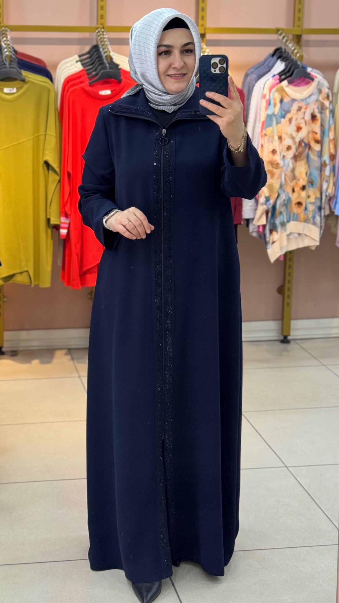 Yakası Taşlı Ferace Lacivert/9017