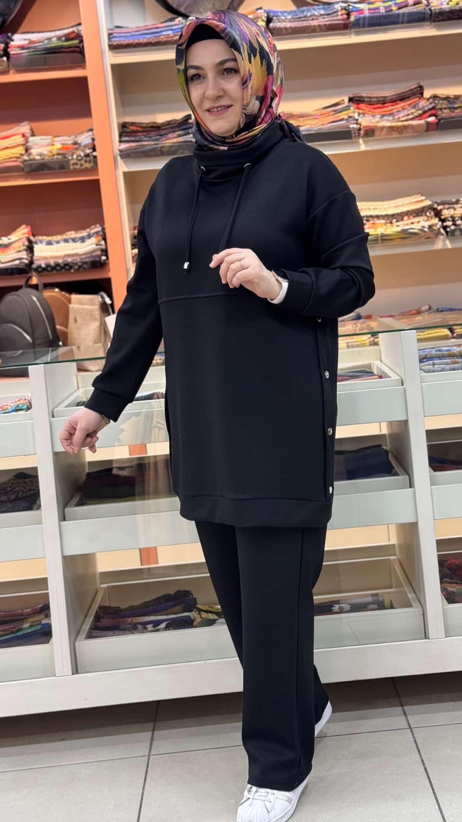 Yanları Fermuar Detaylı Degaje Yaka Takım Siyah/1293