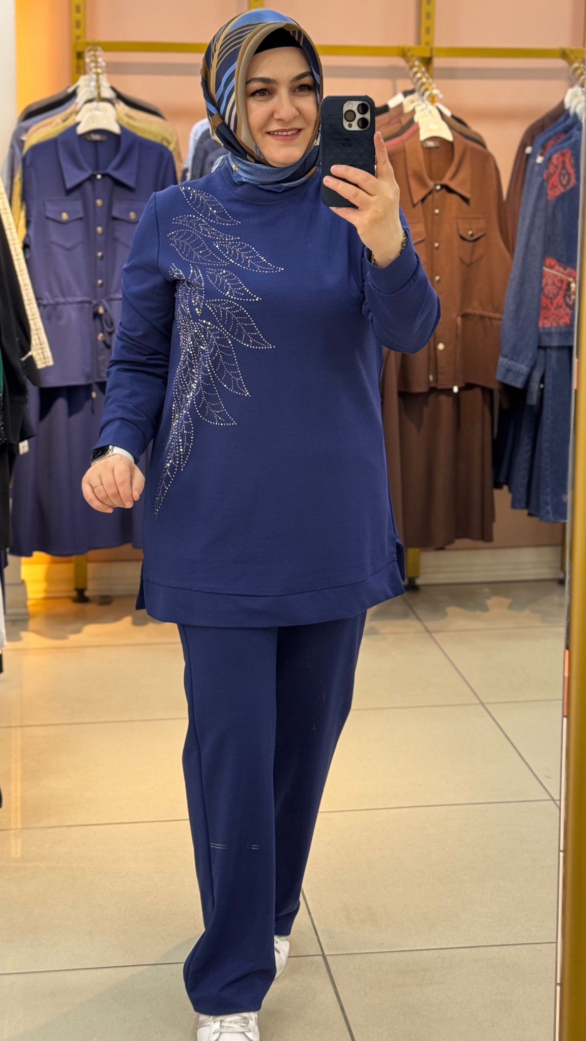 Yaprak Detaylı Pantolonlu Takım İndigo/5021