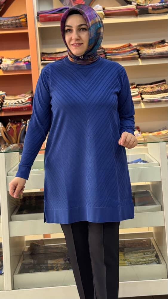 Zikzak Desen Merserize Triko Tunik Saks/1837