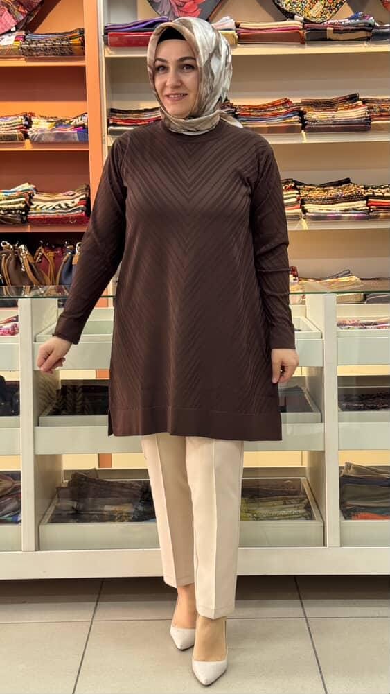 Zikzak Desen Merserize Triko Tunik Acı Kahve/1837