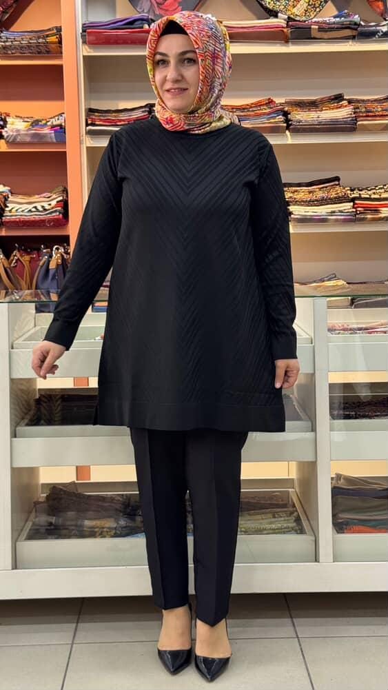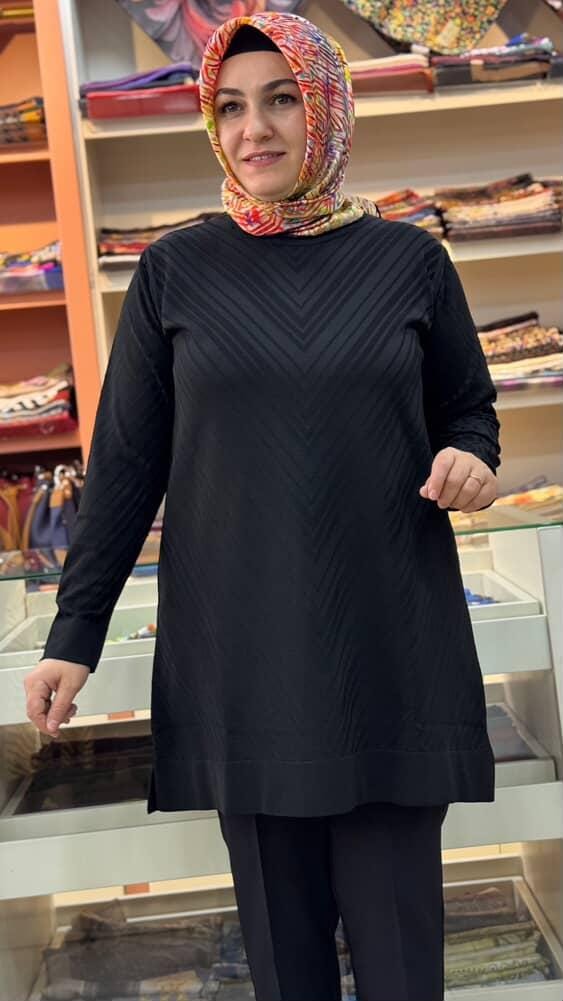 Zikzak Desen Merserize Triko Tunik Siyah/1837