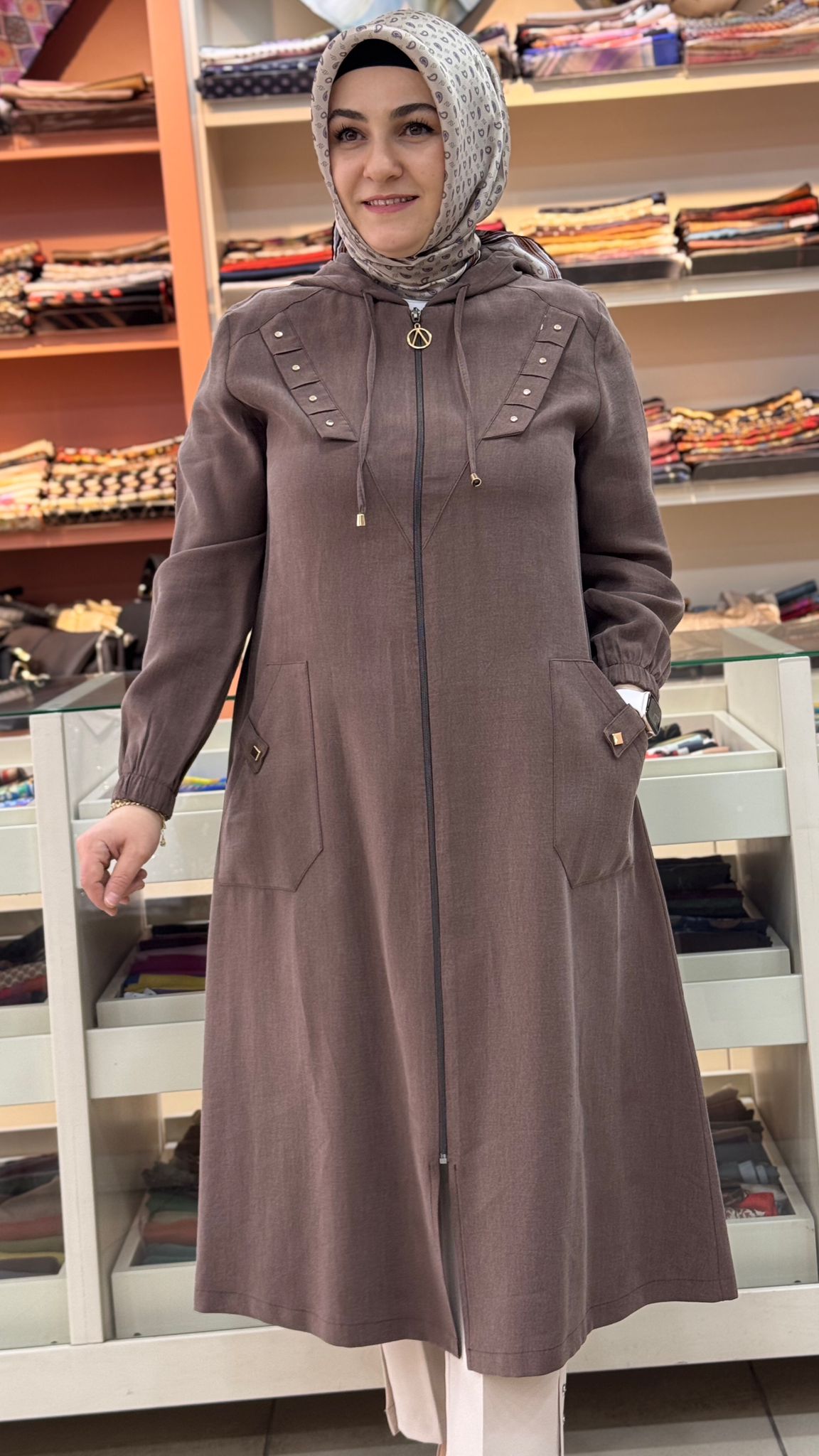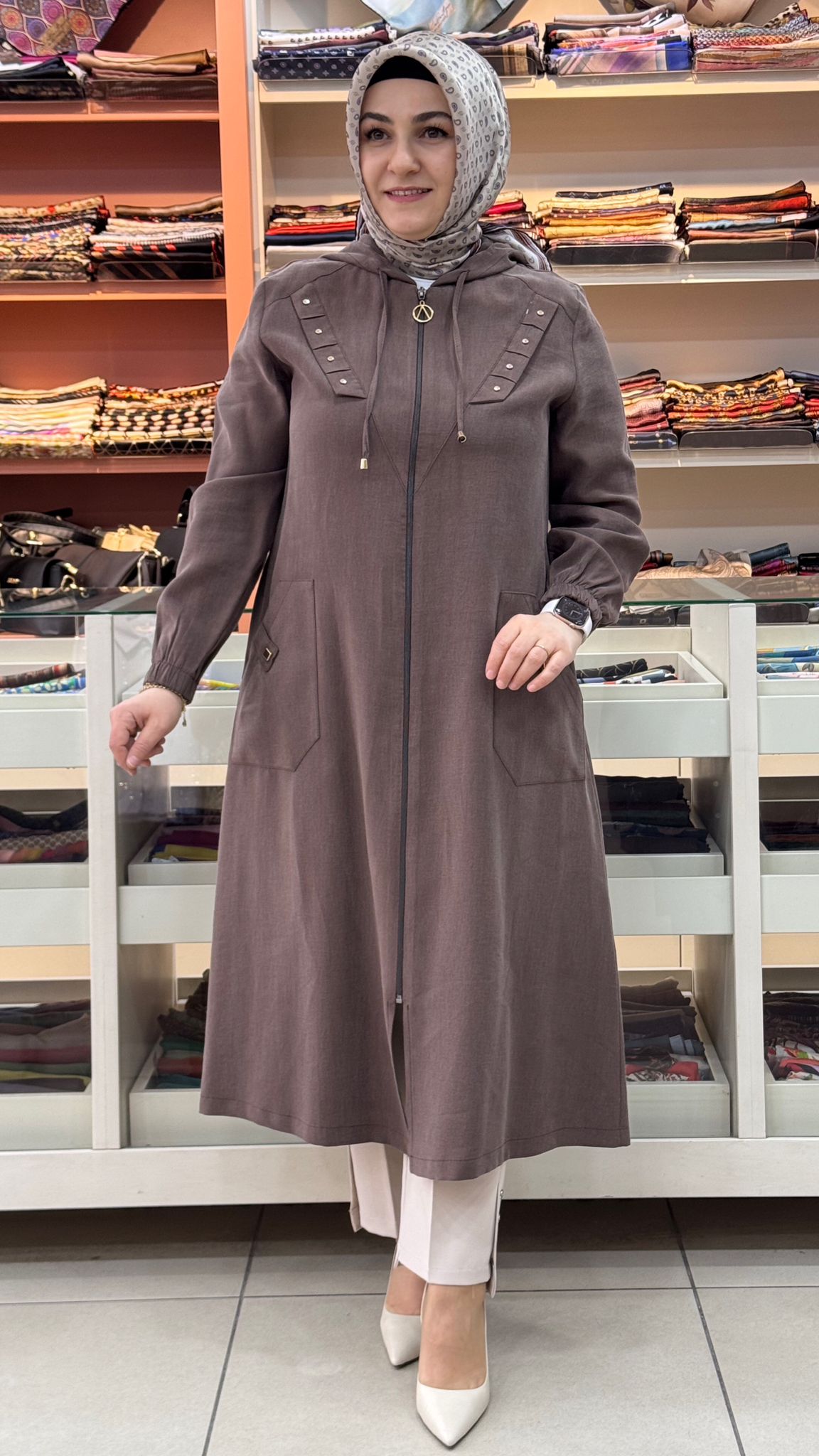 Zımba Ve Cep Detaylı Fermuarlı Kap Kahverengi/1216